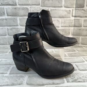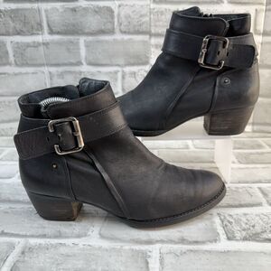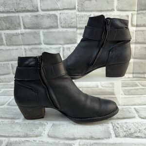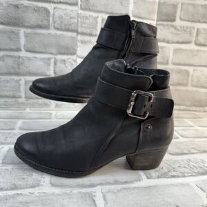 Paul Green Boots Women US 7-UK 5 Black Leather Zip Ankle Buckle Boots