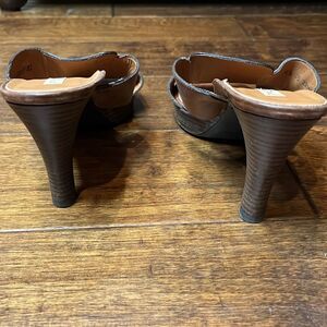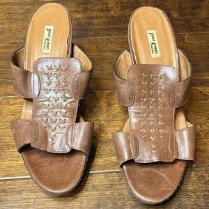 Paul Green Brown "Perla" Leather Open Toe Slip On Heeled Sandal, 6.5!