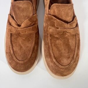 Elevate your everyday style with these beautifully crafted loafers. These shoes boast a classic silhouette reimagined with a modern twist, ready to add a touch of sophisticated ease to your wardrobe. Notice the rich brown suede that invites a tactile experience, promising both durability and a supple feel. The thoughtfully designed construction ensures a comfortable fit, while the clean, contrasting sole provides a contemporary edge. Imagine slipping these on for a casual brunch with friends, pairing them with tailored trousers for a smart-casual office look, or even styling them with a flowy dress for a relaxed weekend outing.