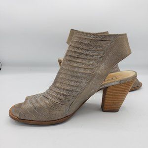 Paul Green Cayanne Bootie 7.5 Gold Distressed Leather Open Toe Side Zipper