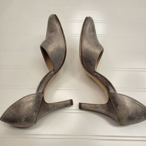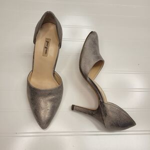 Silver smoke metallic pointed toe pumps. Women's size 36.