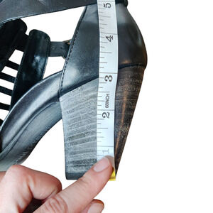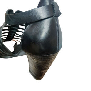 Paul Green Christy Black Leather Caged Huarache Strappy Heel Sandals Size 5.5