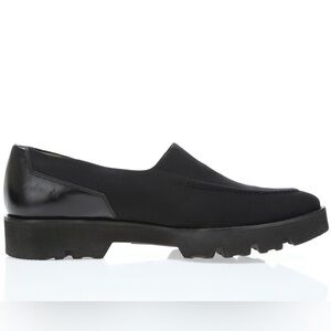 Paul Green Dara Black Ponte Leather Pointed Toe Lug Sole Chunky Loafer Sz UK 4.5