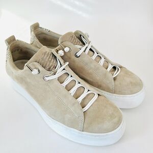 Light gray Paul Green platform slip-on sneakers with bungee lace-up design, like new condition.