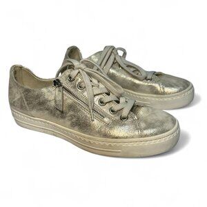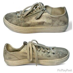 Paul Green Gold/Silver Metallic Tamara Zip Leather Sneakers - UK 5.5, US 8