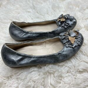 In very good used condition, normal wear, very comfortable and go with everything. Please review all photos before purchasing and bundle for a great discount. Such a cute pair of leather ballet flats.