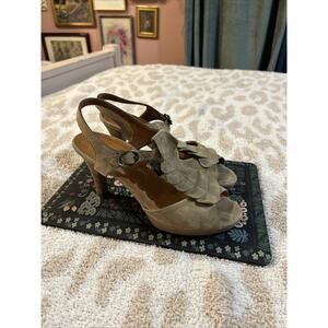 Paul Green Heels Brown Leather 4.5UK 7US Peep Toe Sandal Pump