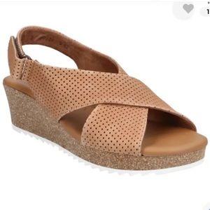 Paul Green Hollie Slingback Wedge Sandals Tan Perforated Nubuck US Size 7