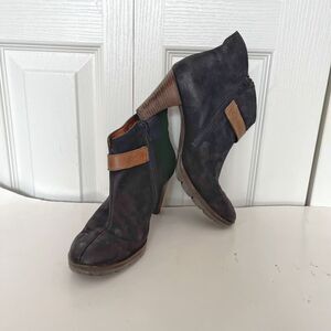 Paul Green Karla Distressed Nubuck Leather Zip Ankle Lug Heeled Boots