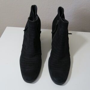 Paul Green Malibu Sliced Zip Booties Leather Suede Ankle Boots Black Chunky Heel