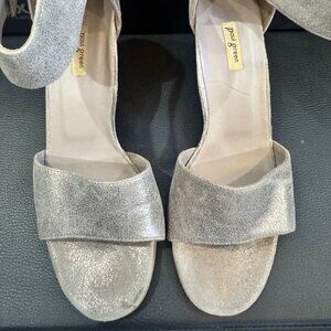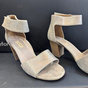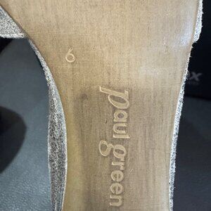 Beautiful metallic gold, Paul Green heels in excellent condition! Open toe with velco ankle loop closure making them easy to size and wear.