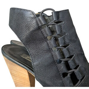 Paul Green Mindy Black Leather Lace Up Cut Out Heeled Sandal Size UK 4.5 US 7