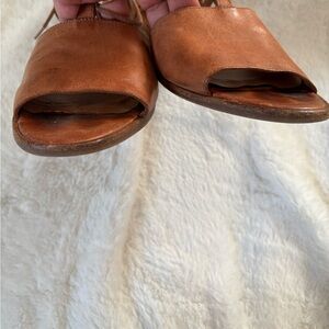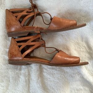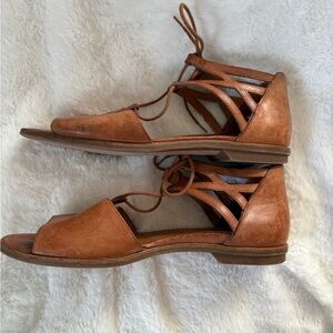 Paul Green Morea Lace Up Flat Sandals Cognac Tan Leather, Sz: 9