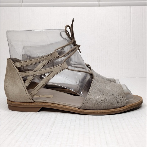 Paul Green Morea Truffel Taupe Gray Boho Vacation Ankle Bow Open Toe Sandals.
