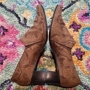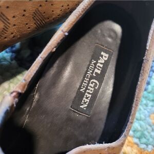 Paul Green Munchen Tooled Leather Block Heel Mules Austrian Made 7.5
