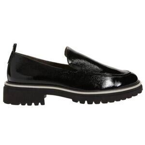 platform loafer, black loafer, slip-on shoe, women's footwear, patent leather, lug sole, Paul Green, professional shoe, crinkle leather, modern classic, work shoe, comfortable loafer, stylish shoe