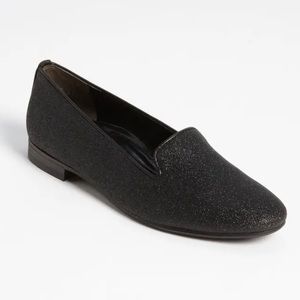 Shimmery glitter frosts the smoking-slipper silhouette of a classic flat.