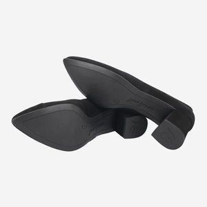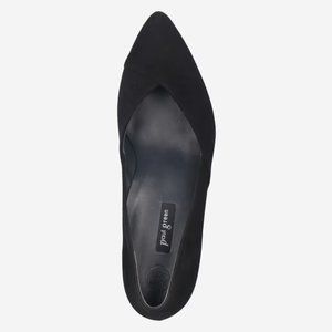The soft velvet leather in black presents itself with a pointed toe cap and lateral, V-shaped cutout.