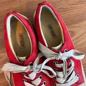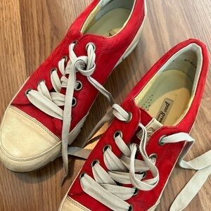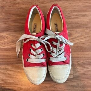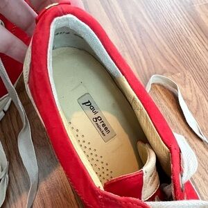 PAUL GREEN Handmade Red Suede Comfort sneaker. The Paul Green Posh Athletic feature a Red Suede and Tan leather upper with a Round Toe.
