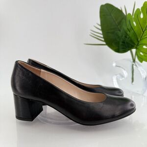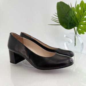 Paul Green Samona Pump Womens 8 Black Leather Low Block Heel Round Toes Comfort