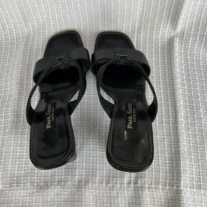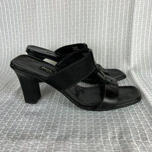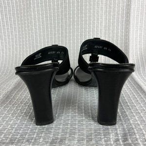 Paul Green Sandals 6.5 Block Heel Black Leather Open Toe Slip On Shoes Handmade
