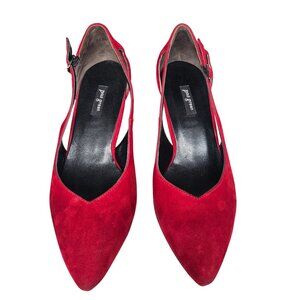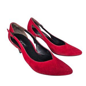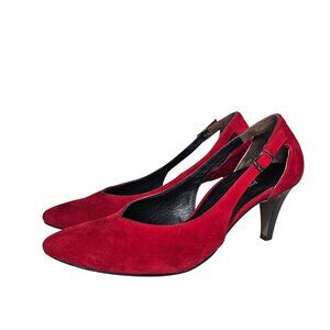 Paul Green Sasha Pump Chili Red Suede Heels Cutout Pointed Toe Womens US8 UK5.5