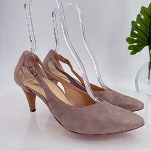 Paul Green Sasha Pump Beige Metallic Leather Pointed Toe Heel US 10 UK 7.5