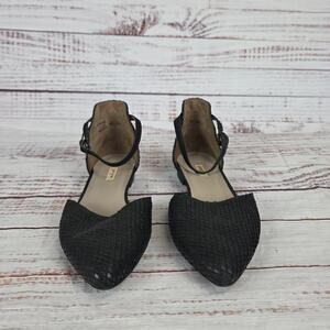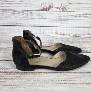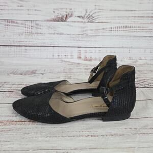 Paul Green Shoes Womens Size 6.5 Black Ankle Strap Pointed Toe Textured Flats