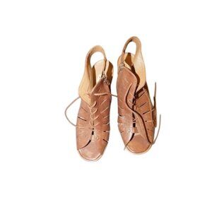 Paul Green Size 7.5 (5 EURO) Brown Leather Lace Up Peep Toe Slingback Heels NEW