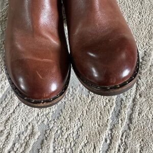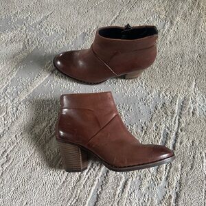 Paul Green Stella booties ankle boots leather brown cognac side zip heel 7