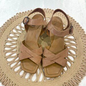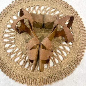 Paul Green Tan Cross Front Velcro Ankle Suede Heel Sandals Size UK 4.5/ US 7