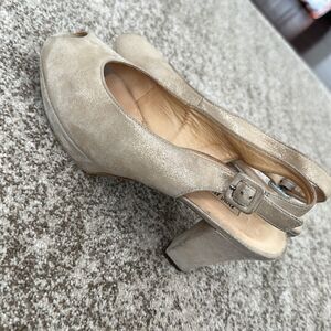 Paul Green Tan Leather Slingback Platform Heels 10