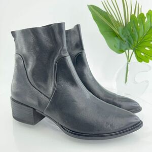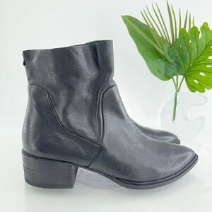 Paul Green Women's Boot Size 8 Block Heel Pointed Bootie Black Leather Zip Up