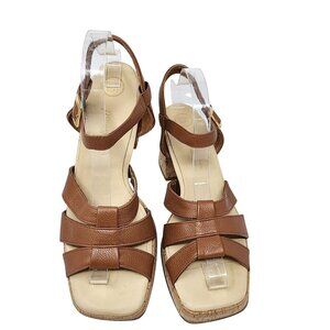 Paul Green Womens Brown Leather Cork Heel Sandals Size UK 7 US 9