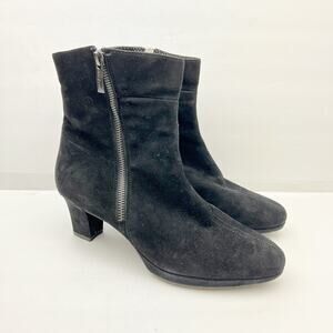Paul Green women's grey black suede block heeled booties in size 4 (US 6.5).