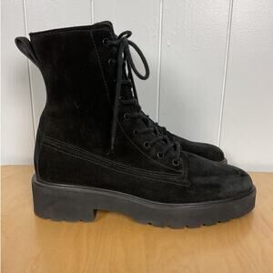 Paul Green Women's Jackson Black Suede Lug Sole Combat Boots Size 9 1/2