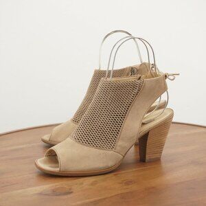 -Paul Green Womens Lexi Booties Boots Open Toe Block Heel Beige Leather 6.5 UK / 9US
