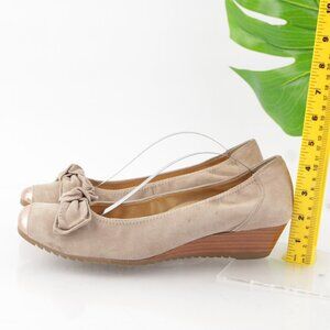 Paul Green Womens Nola Slip On Shoes Size 10 Tan Suede Rose Gold Low Wedge Bows