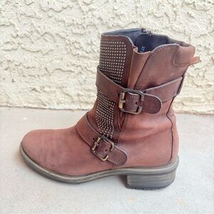 Paul Green Women's Size US 8 UK 5.5 Studded Buckled Brown Leather Moto Boots