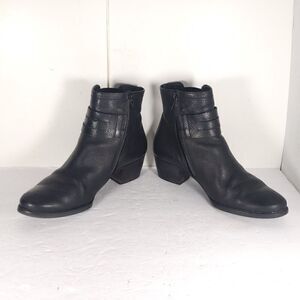 Paul Green Women's US8-8,5 UK6 Black Leather Side Zip Buckle Ankle Boots Booties