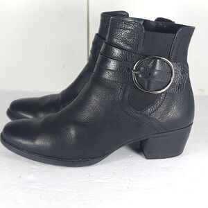 Paul Green Women's US8-8,5 UK6 Black Leather Side Zip Buckle Ankle Boots Booties.