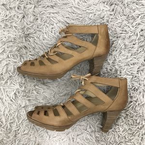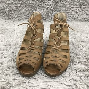 Paul Green mocha brown lace up peep toe ankle bootie sandals 7.5