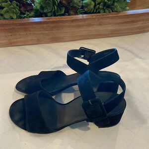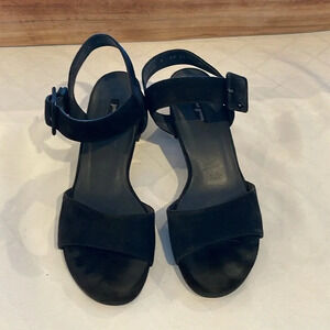 Paul Green sandals SAMTZIEGE SCHWARZ black suede heeled heels size UK 6 US 8 EUC
