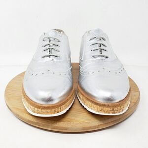 Paul Green Shoes Womens 7 Silver Leather Platform Wingtip Oxford Sneaker