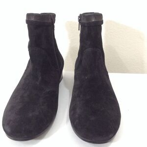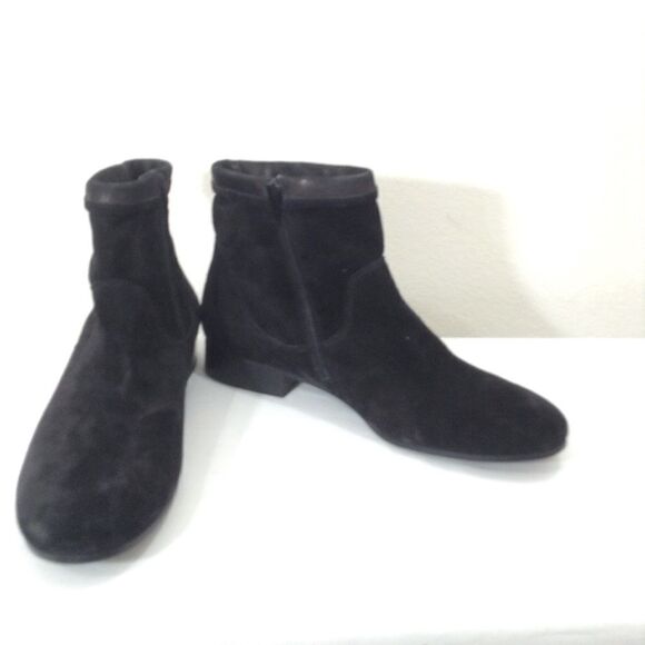 Very good condition, no flaws, suede stacked heel, inside zip, size state a 6, but for US they are a size 8 1/2