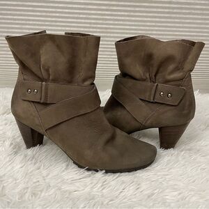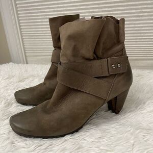 Paul Green Women’s pewter Suede Ankle Boots, scrunched up shaft side zip sz 8