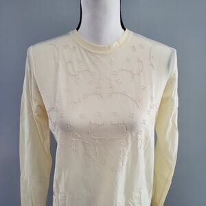 Paul Harris Design Cream Long Sleeve Sheer Beaded Top M