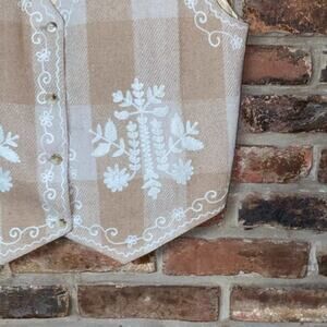 Paul Harris Designs Wool Plaid Embroidered Tan Gold Vest Women's Size Large