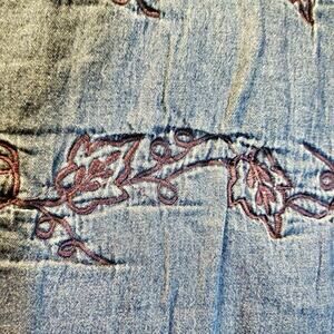 Elevate your style with this Paul Harris Vintage Denim Vest in Size L🔵Crafted with intricate embroidery and quilted details, this button-up vest offers a unique and trendy look. Made from soft and warm denim, it provides comfort and coziness for the colder seasons