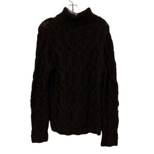 Paul James Brown Wool Cable Knit Turtleneck Sweater Womens Size Large